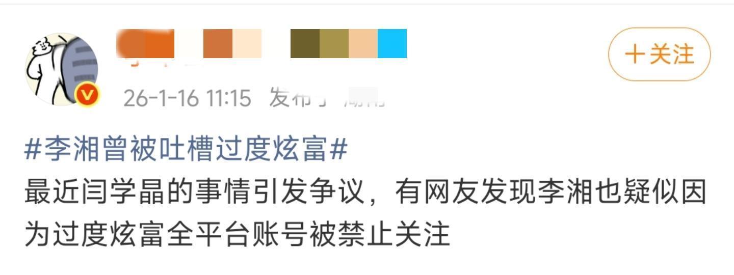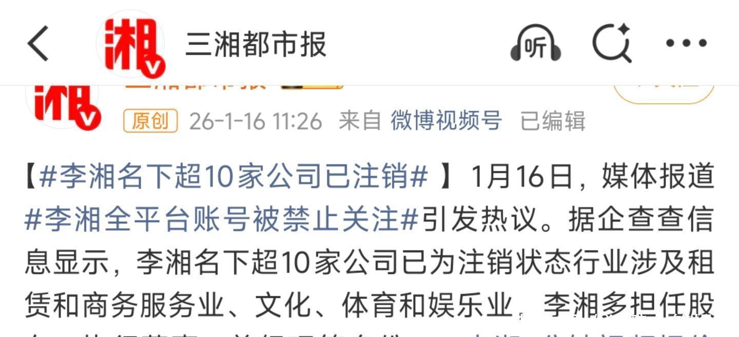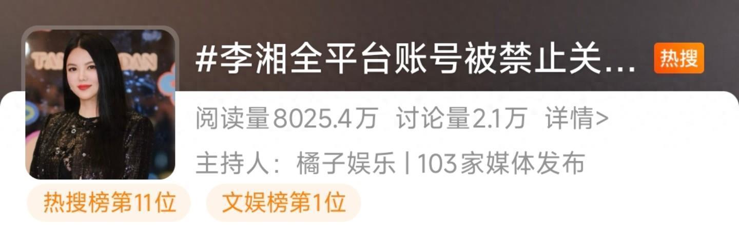 就在刚刚,娱乐圈传来一个不好的消息,前知名主持人李湘的自媒体账号被禁止关注了。